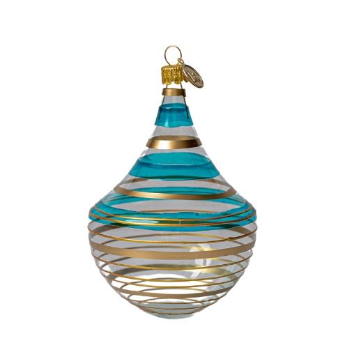 Vianočná ozdoba Secese - fľaša s jemnými zlatými a tyrkysovými prúžkami, 1 kus - popis: