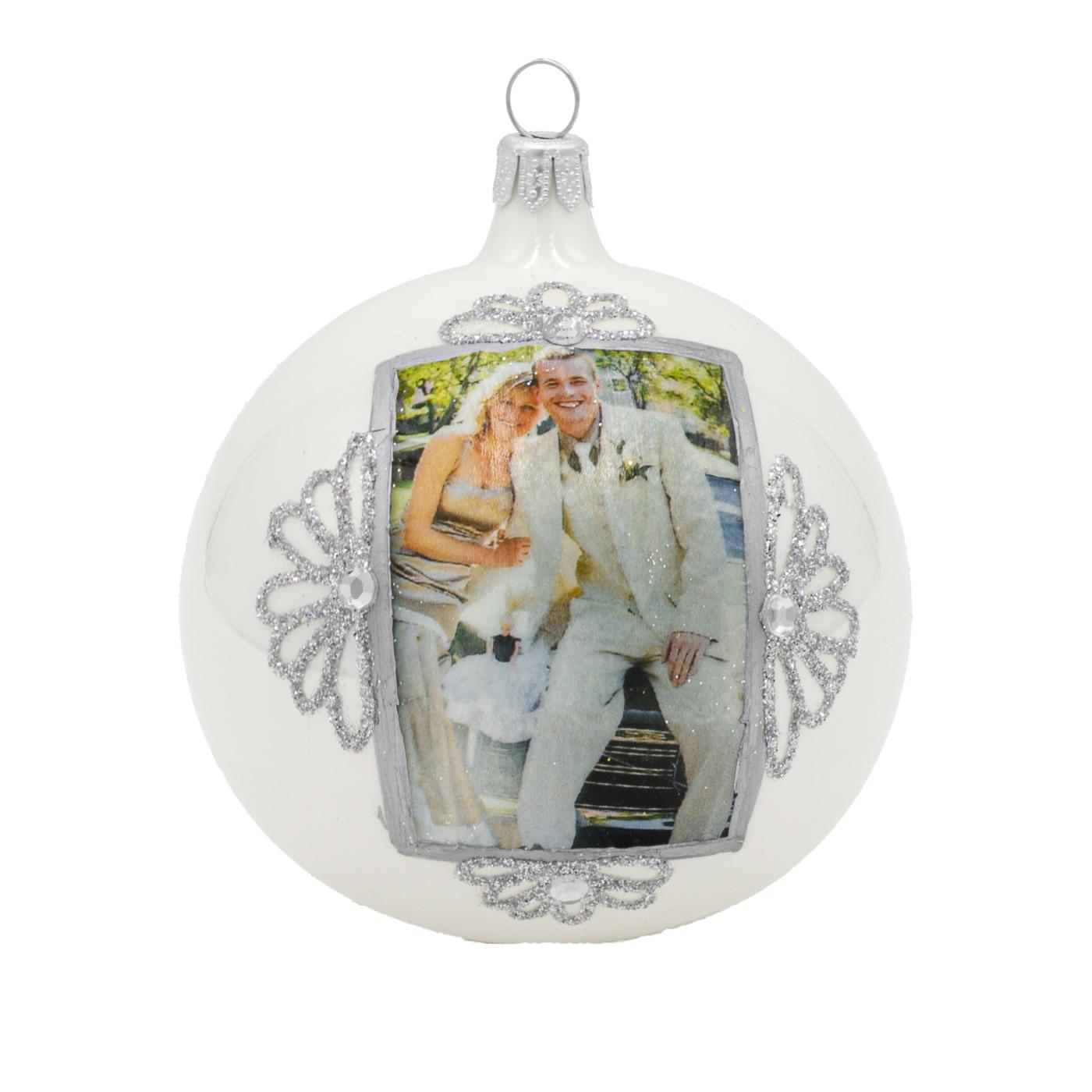 K výrobě tzv. foto ozdob nás přivedla výroba koulí s podobiznami prvorepublikových herců pro zámek Loučeň. Vzorky těchto ozdob pak zůstaly ve výrobě a lákaly účastníky exkurzí. Abyste si i vy mohli nechat přenést portrét nebo jiné fotografie na ozdobu, připravili jsme několik dekorů rámečků, popř. může zůstat fotka na ozdobě bez rámečku. Barevné či černobílé fotografie mohou být přeneseny nejen na koule ale i srdce. Technologicky je to zdlouhavý proces náročný na čas a zručnost. Nejlépe fotky vyniknou na světlém až bílém podkladě. Stejně jako další ozdoby na přání, i tyto slouží jako výjimečný dárek nebo připomínka vztahující se k milníku v životě. S jejím zavěšením nečekejte až na vánoční stromeček a vyzdobte si s ní interiér hned.