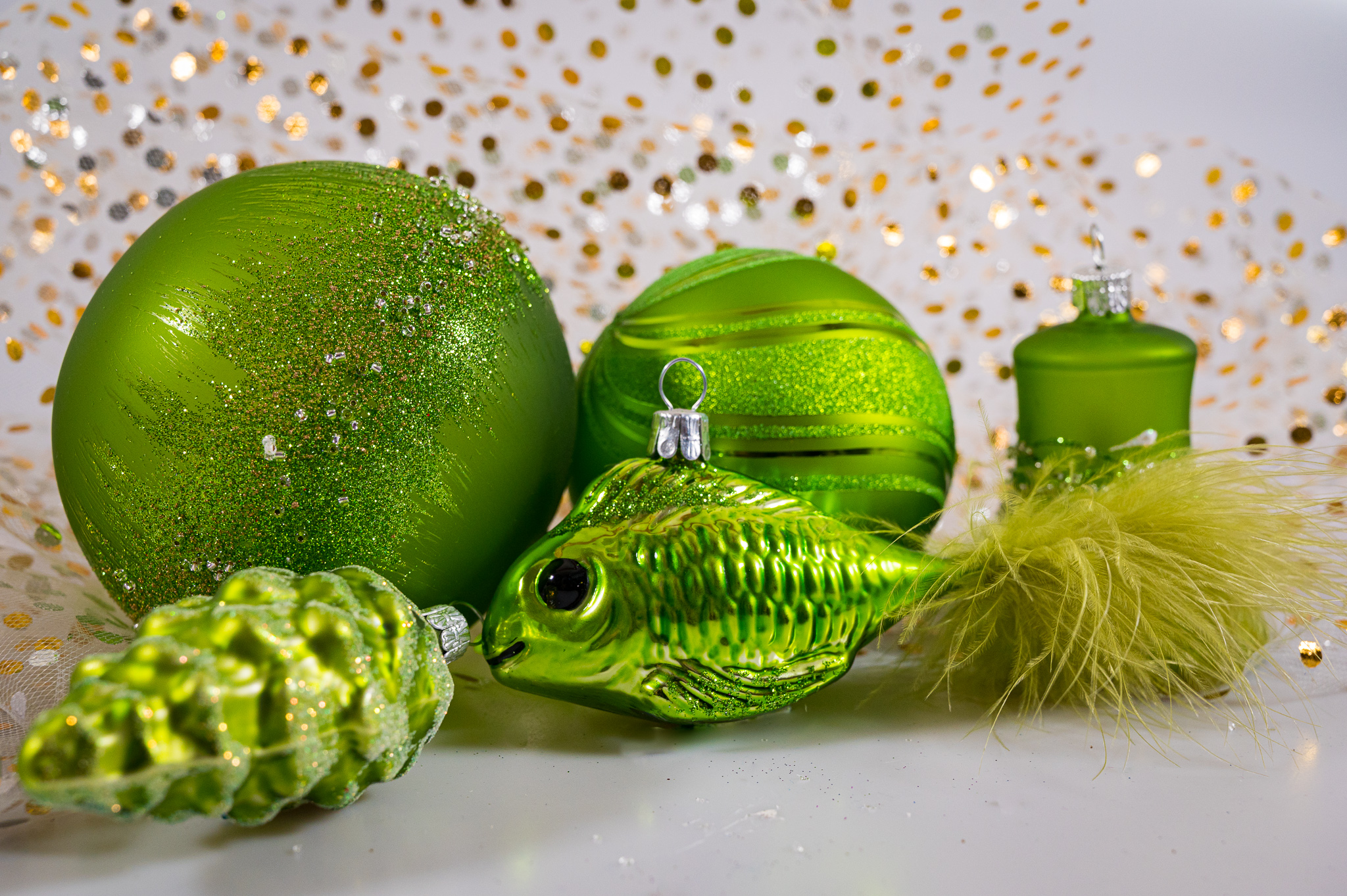 Prírodné tóny svetlozelenej farby, to je pokoj lesa a pokoj, ktorý si z neho odnášame. Práve to predstavuje kolekcia Basic Moss. Ozdoby tejto kolekcie sú číre alebo s matnými efektmi. Gule, kužele a iné tvary sú zdobené dekormi v rovnakých odtieňoch alebo zlatom. Častým motívom sú vetvičky a listy. Svetlozelená kolekcia osloví svojimi dekormi nielen ženy, ale aj mužov - prekvapte ich a darujte im sklenené fúkané šišky alebo ešte lepšie - uhorky!